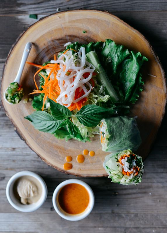Lettuce carrots cucumbers avocado rice noodles and Asian herbs wrapped in soft rice skin. Order Thai Food Delivery in Spokane Valley.
